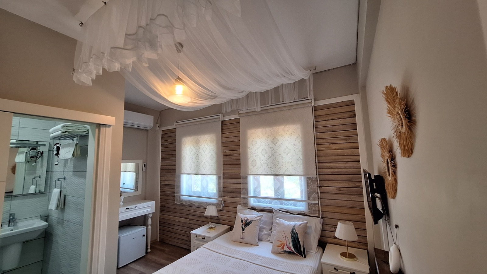 Karina Vineyard House'da double yatak bulunan çift kişilik odamızdır. Tek gelen misafirlerimiz için de bu odamızı verebiliyoruz. Ayrıntılı bilgi ve rezervasyon için arayabilirsiniz.